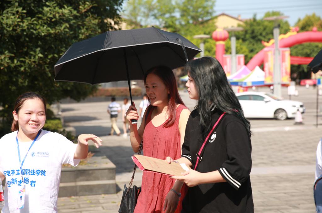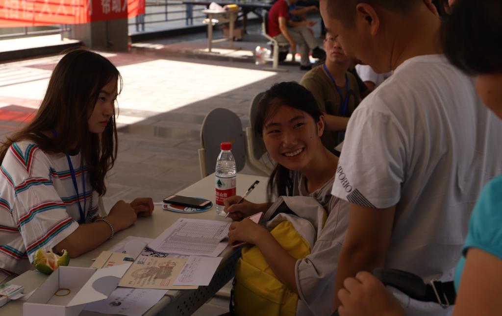 由于迎新期间天气炎热,学校特意在各个报名地点提供了制冷大空调等防暑设施,为现场的工作人员、新生以及家长营造一个更加舒适的报道环境。