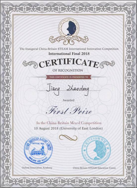 混合赛是本次大赛的关注焦点,于8月10日在东伦敦大学举行,由中英选手通过交流后自由组队,利用3D打印、传感器、电子控制技术及身边可利用的材料(塑料、纸盒、易拉罐等)实现产品功能的创新设计和外观创意设计。比赛时长3小时,完成后由专家组进行全英文答辩。我校蒋兆东同学设计的作品取得了混合赛一等奖的优异成绩,同时还获得牛津大学创新研究院推荐书,毕业后就可就读英国G5超级精英大学(G5指:牛津大学、剑桥大学、伦敦大学、帝国理工学院、伦敦政治经济学院)。傅治荣和刘云帆同学获得混合赛优秀奖。