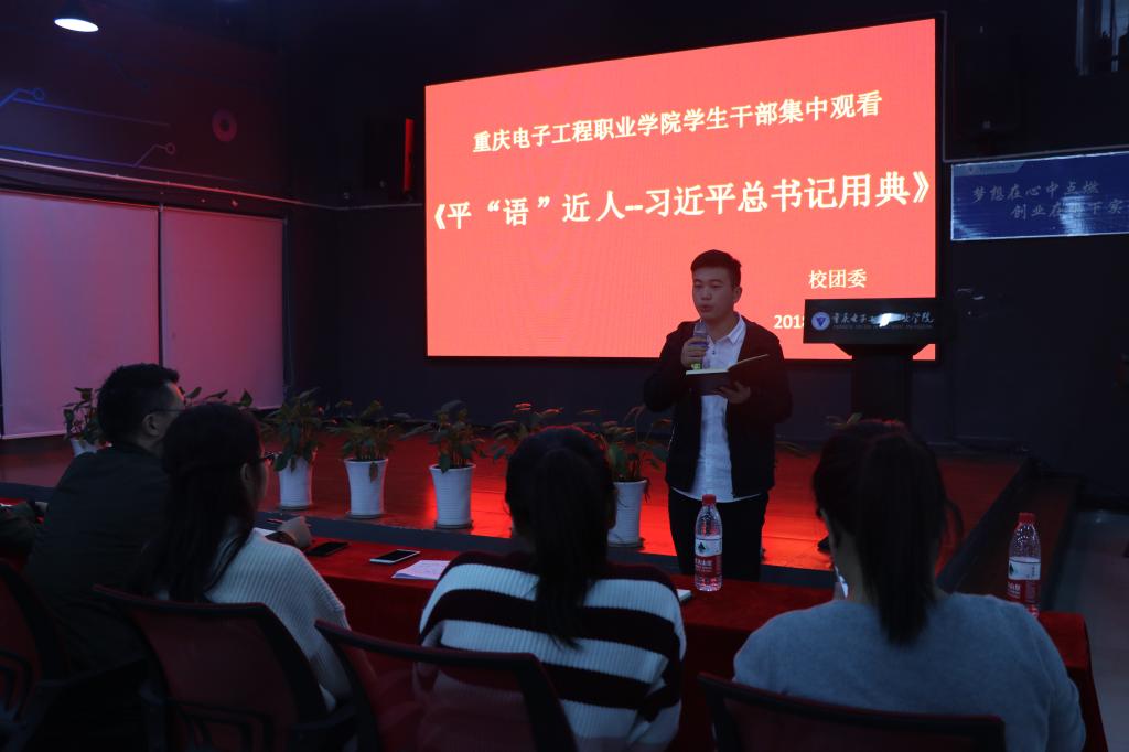 为了深入学习贯彻习近平总书记系列重要讲话精神,引导广大青年学生在思想与行动上向习近平总书记学习,2018年10月10日晚八点,我校校团委组织学生干部在众创空间路演大厅集中观看了由中央电视台综合频道推出的《百家讲坛》特别栏目《平“语”近人——习近平总书记用典》。校团委老师及校学生干部共80余人一同观看了专题片。