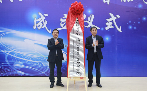 随后,海尔数字科技有限公司任学良总经理和我校副校长刘成俊签订了校企战略合作协议,陈录城先生和我校校长聂强共同为新学院揭牌。