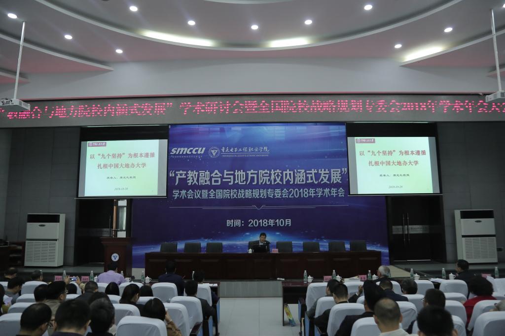 2018年10月20-21日,由全国院校战略规划专委会主办的“产教融合与地方院校内涵式发展”学术研讨会暨全国院校战略规划专委会2018年学术年会在我校博远厅召开。全国院校战略规划专委会理事长、中国人民大学教育学院副院长周光礼教授,北京大学高等教育科学研究所副所长施晓光教授,全国院校战略规划专委会副理事长、原陕西省教育厅副厅长郝瑜教授,《中国高校科技》杂志主编马海泉教授,我校党委副书记唐玉林教授,副校长刘成俊教授以及全国信息资料研究会秘书长周详等出席了开幕式,来自全国120余所高校的180多位代表参加了会议。会议由全国院校战略规划学术委员会副主任曾山金等分别主持。