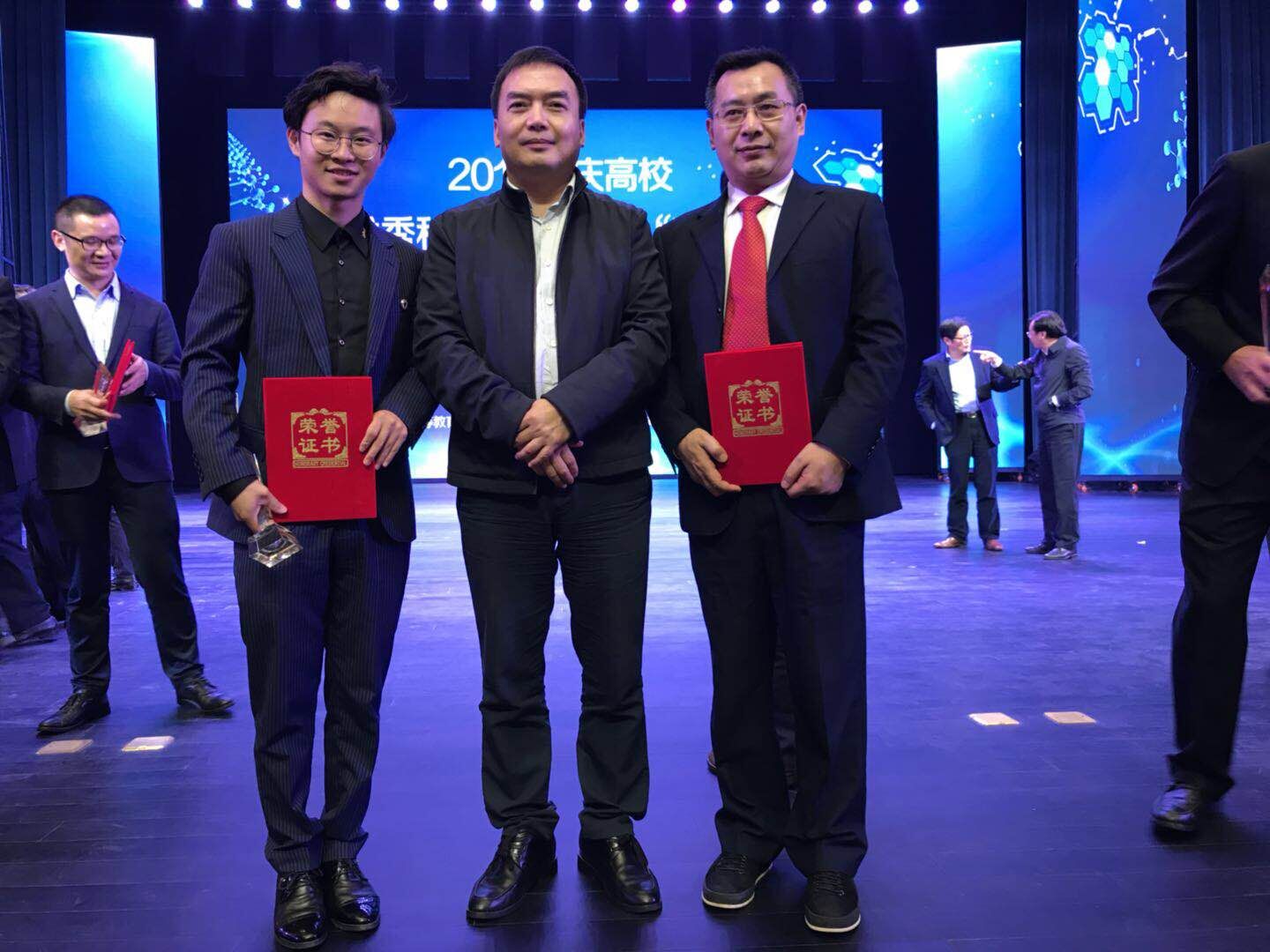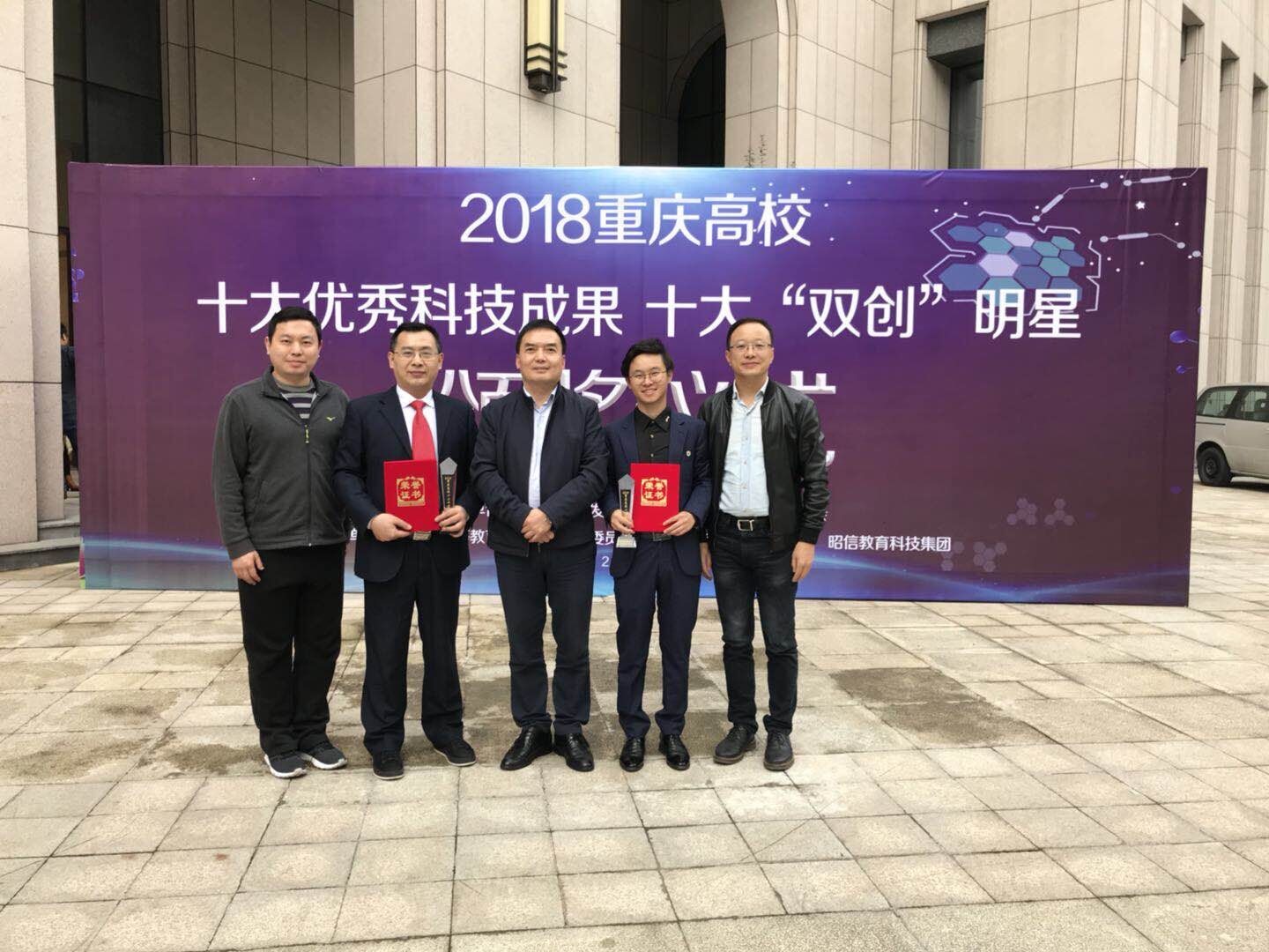 会上,重庆市高等教育学会会长欧可平宣读了荣获十大优秀科技成果项目团队和荣获十大“双创”明星的文件,颁奖嘉宾分别为获奖的团队、老师和学生颁发了奖杯和荣誉证书。在此次评选活动中,我校唐艳辉教授作为孵化平台建设者、杨成兴同学作为创新创业学生,与本科院校师生同台竞技,同时被评为十大“双创”明星,成为重庆市高职高专唯一师生同获该殊荣的院校。