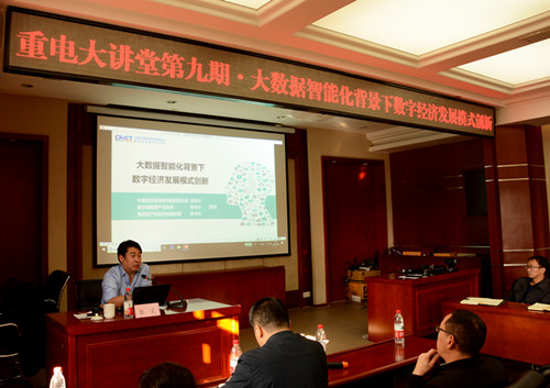 2018年11月1日下午2点30分,由电子与物联网学院、科研处主办的“大数据智能化背景下数字经济发展模式创新”专题讲座在博润厅顺利举行。本次讲座特邀中国信息通信研究院西部分院常务副院长、重庆市物联网产业协会秘书长张炎先生为我校教职工开展讲座。我校科研处处长许磊、电子与物联网学院院长陈良、副院长夏西泉、组织委员陈鸿和教师代表近百人参加了本次讲座。