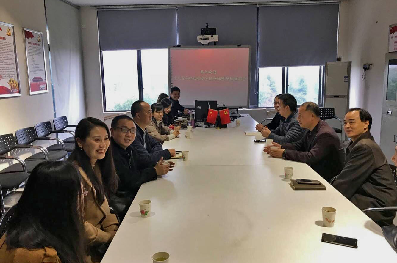2018年11月14日下午,重庆青年职业技术学院信息工程系唐中剑主任一行9人来我院交流,在1503会议室我校数字媒体学院党总支书记彭海深、副院长刘晓东、副书记钟佐彬、正处级行政督导何能、党政办钟翼主任、动画系罗坚主任、虚拟现实系刘明主任出席了座谈,双方共商专业内涵建设、课程建设、实训室建设、校企合作,进行了深入探讨。