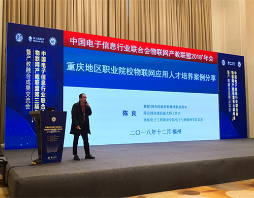 会上,陈良院长以“重庆地区职业院校物联网建设思路及案例分享”为主题发表了演讲,以我院物联网工程系的建设为例,对如何推进校企在多层次、多维度、多区域深入合作,创新产教融合方式,以及创新人才培养模式,提高人才培养质量的经验进行了总结分享。