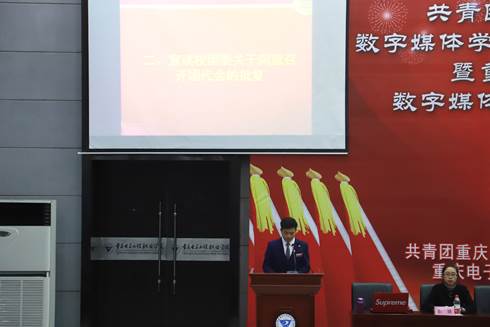 最后,共青团重庆电子工程职业学院数字媒体学院总支委员会第一次代表大会暨重庆电子工程职业学院数字媒体学院第一次学生代表大会在激昂的共青团团歌声中落下帷幕。