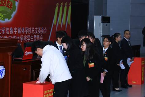 会上,校团委副书记张程同学宣读校团委《关于同意共青团重庆电子工程职业学院数字媒体学院第一届总支委员会委员候选人建议人选和重庆电子工程职业学院数字媒体学院第一届学生委员会委员候选人建议人选的批复》。随后,团学代表先后表决审议通过委员选举办法和大会选举总监票人、监票人、总计票人、计票人名单。与会团学代表选举并产生共青团重庆电子工程职业学院数字媒体学院第一届总支委员会委员9名、重庆电子工程职业学院数字媒体学院第一届学生委员会委员7名。