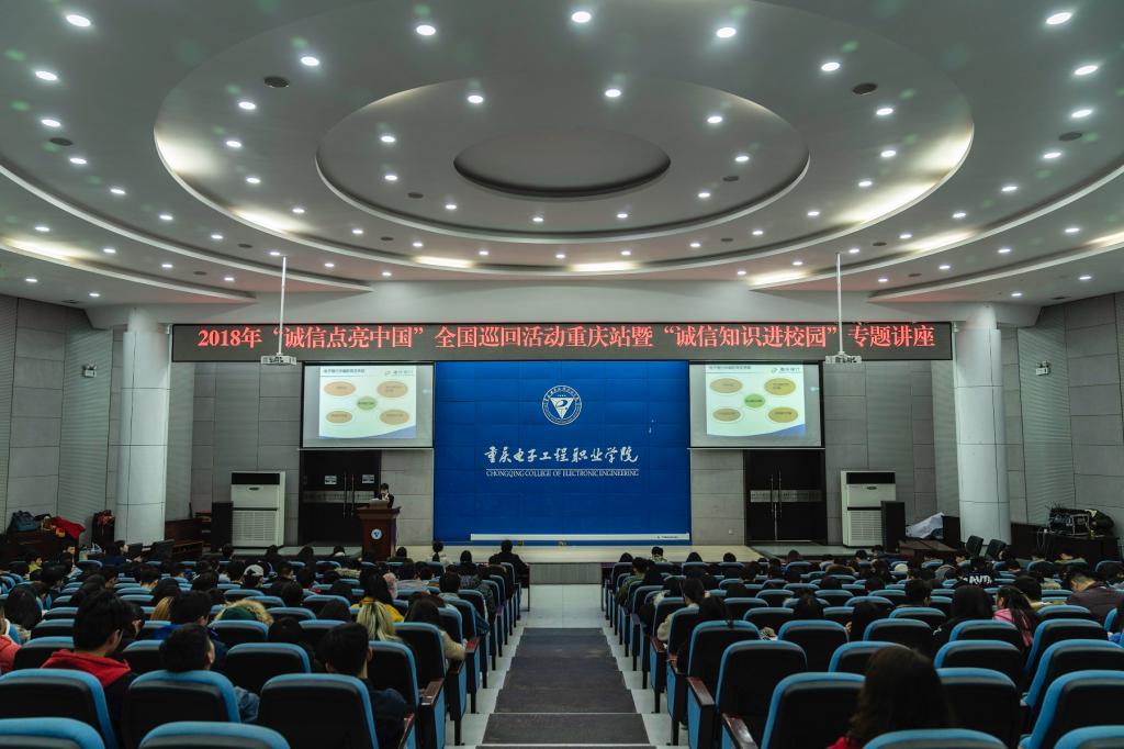 为了更好地贯彻落实党的十九大精神,提升和增强青年大学生的诚信意识和信用理念,引导青年参与诚信建设,12月14日,2018年“诚信点亮中国”全国巡回活动重庆站暨“诚信知识进校园”专题讲座在我校博远厅顺利举行。重庆银行渝中管理部理财经理孙玮泽、运行管理部赵婧雯、零售银行部宋扬、我校团委老师佘妮娟、校学生会各部门、青年志愿者服务总队、学生社团联合会、各二级学院学生会成员共200余人参加此次活动。