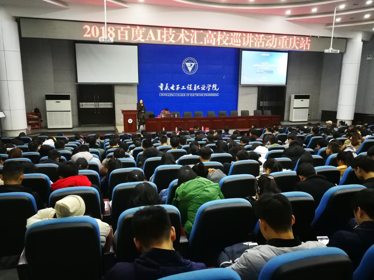为增强重电学子对人工智能领域的认识,培养对AI技术的学习兴趣,人工智能与大数据学院于2018年12月18日邀请了百度校园品牌部经理马天野女士、人工智能系专业教师朱堂勋和李红蕾老师,在博远厅开展了2018年百度AI技术汇高校公益巡讲活动。作为AI领域领军企业,百度希望能为在校大学生提供一个了解和学习AI技术的平台,培养大学生对AI技术的学习兴趣,提升其创新实践能力。