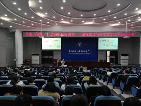 2019年1月3日下午1点,重电大讲堂“打造高职精彩课堂——课程建设与课堂教学改革经验分享”专题讲座在博远厅顺利开展。本次讲座邀请国家级精品在线开放课程主持人、国家职业院校教师教学能力大赛教学设计赛项一等奖第一名获得者代才莉老师进行分享,各二级学院专业主任、骨干教师、课程负责人等专业教师团队参加了本次讲座。