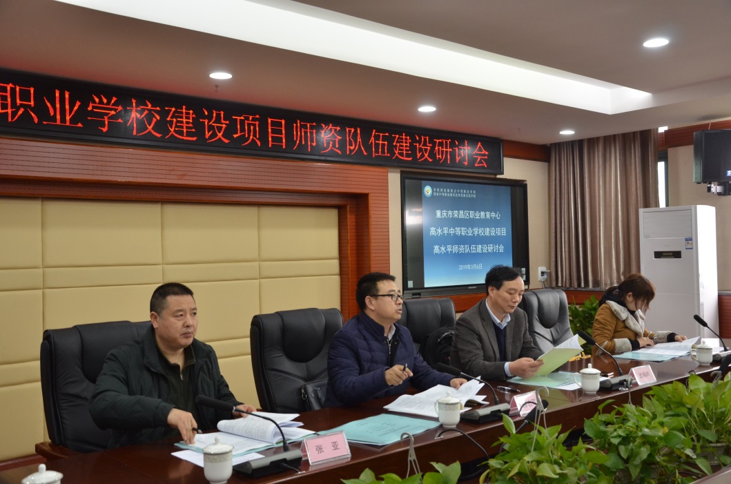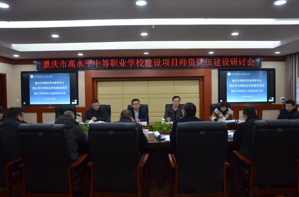 3月6日下午,荣昌区职业教育中心召开重庆市高水平中等职业学校建设项目师资队伍建设研讨会,应荣昌区职教中心邀请,我校人工智能与大数据学院院长武春岭教授、培训与继续教育中心主任陈志军大师等出席研讨会,并对建设项目给与了指导。