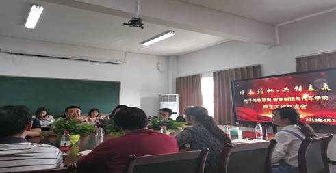 为加强辅导员队伍建设,有效借鉴和推广学生工作先进经验,提升辅导员队伍的专业技能和管理水平,4月24日下午,智能制造与汽车学院联合电子与物联网学院开展了以“携手扬帆·共创未来”为主题的学生工作交流会。两个学院的党总支书记、党总支副书记、学管科长、团总支书记、全体辅导员参加了本次交流会。