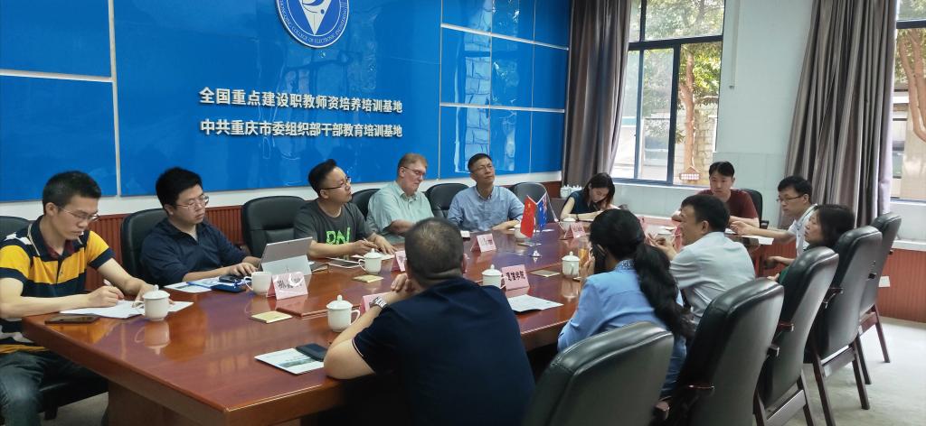 首先,国际交流与合作发展处处长莫绍强对来访的各位嘉宾表示热烈欢迎,介绍了学校的建校历史,专业特色及专业优势,我校在职业类院校排名全国50强,特色专业排名全国第6彰显了重电的势力,给与会者留下了深刻的印象。随后由重教国际副秘书长谢世波,就中外人文交流(重庆)试验园区签约建设、百富学院邹院长以及重教国际澳洲基地Robert主任的国际教育资料做了介绍。同时,Robert针对性的介绍了澳洲在通信领域、健康领域的资源优势。百富学院副院长Prof. Zou Changzheng也同步分析了通信人才及健康领域人才在澳洲长期存在巨大需求。