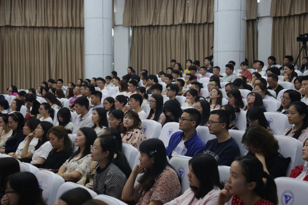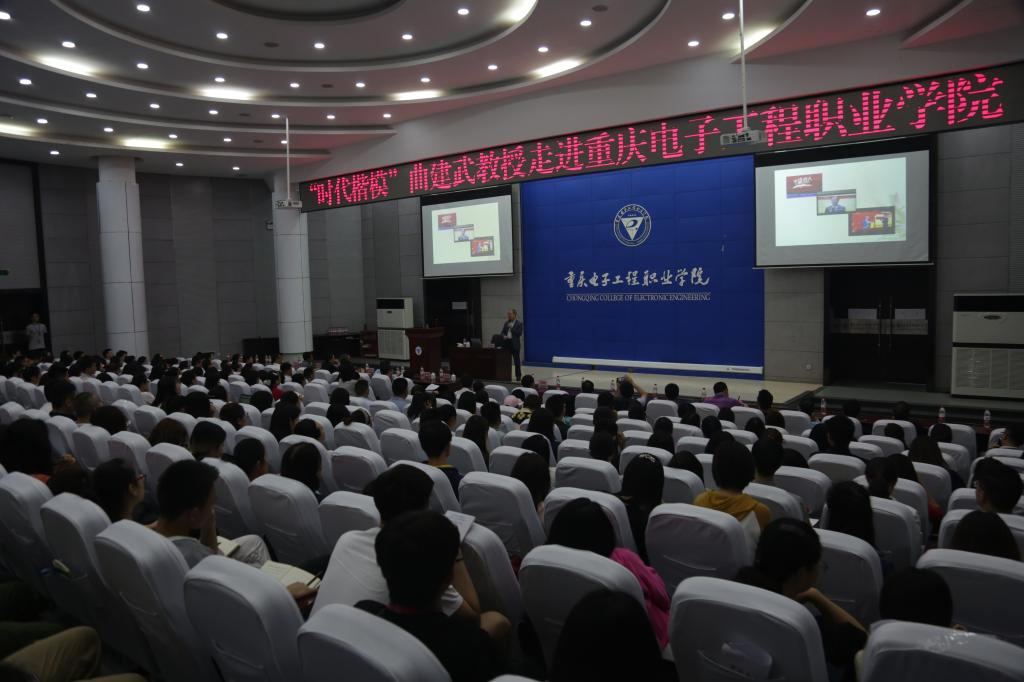 2019年5月10日晚,重庆电子工程职业学院博远厅座无虚席。受我校邀请,全国时代楷模、大连海事大学辅导员曲建武教授来到我校,以“给学生心灵埋下真善美的种子”为题为师生们作了精彩讲座。该活动由中共重庆电子工程职业学院委员会主办,党政办公室、党委宣传部、党委学生工作部、人力资源处承办。重庆大学思想政治研究中心副主任蒲清平教授、重庆商务职业学院副校长舒鸿、重庆商务职业学院学工部部长胡大勇、重庆医药高等专科学校学工部部长陈立书、校党委组织部、党委宣传部、党委学工部负责人、各二级学院党总支书记、副书记、学管科科长、团总支书记、全体辅导员、学生代表以及重庆医药高等专科学校和重庆商务职业学院的两课教师、辅导员代表参加了本次讲座。本次讲座由副校长谢义华主持。