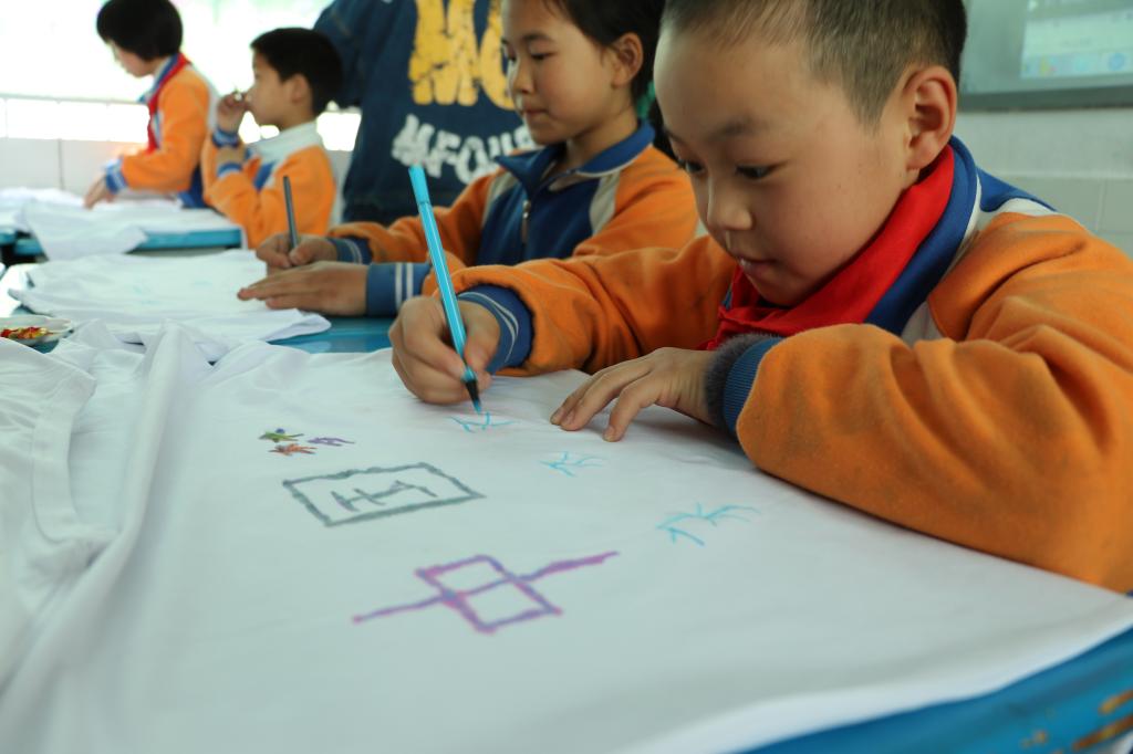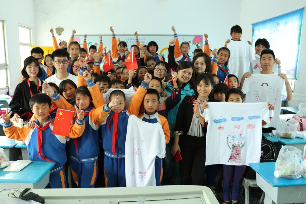 兰桥镇党委书记陈兴亮、副镇长赵小波、兰桥镇中心校副校长周建强及中心校部分学生与我校乡村教育帮扶分队的师生们开展了教育脱贫座谈会。座谈会上,兰桥镇领导和中心校领导对我校师生的到来表示热烈地欢迎,并对捐赠图书、体育用品等爱心物资表示诚挚地感谢。随后小分队师生和兰桥镇中心校的老师们围绕社会调查及人物访谈进行了深入座谈,还给中心校四年级1班的同学们上了一堂主题为“国”的思政课,教他们唱《我和我的祖国》等歌曲;和他们一起开展“齐编中国结,共筑中国梦”传统手工活动及“童心绘,家乡美,梦飞扬”的现场T恤涂鸦活动。师生们热情洋溢的歌声和笑声响彻整个校园。