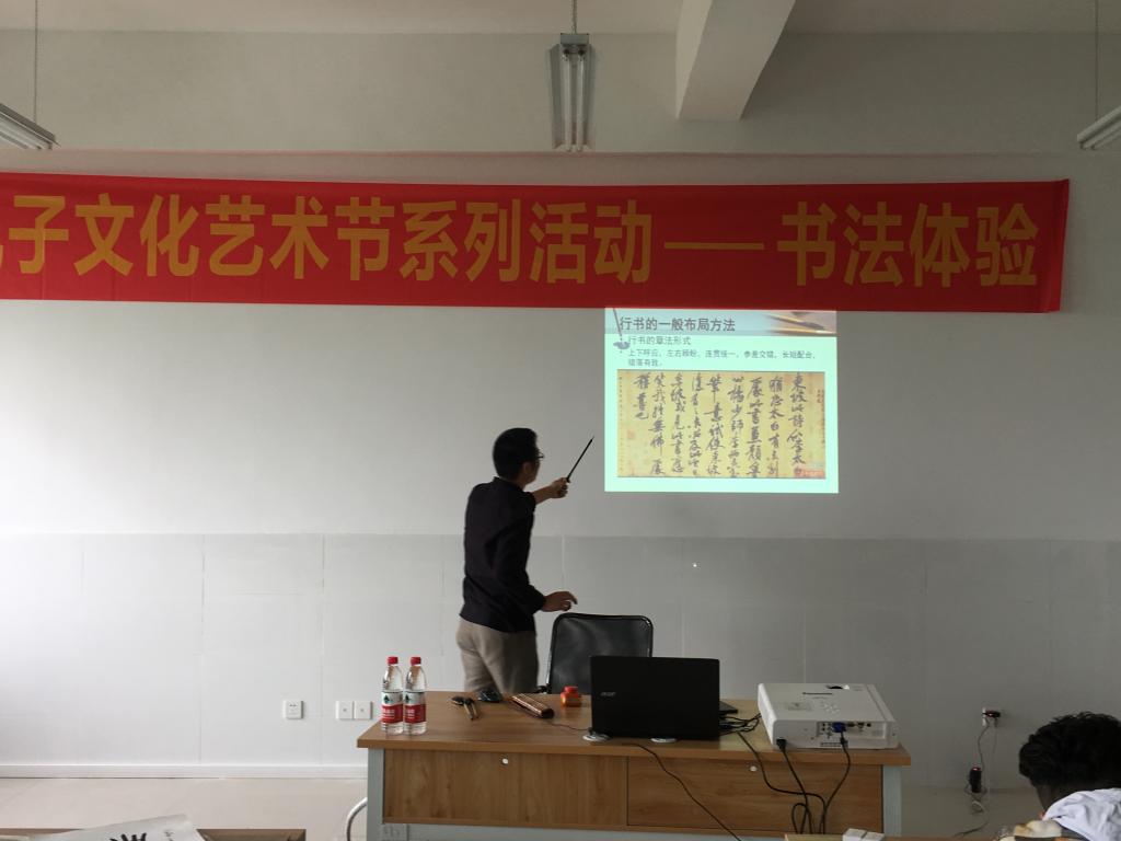 2019年05月9日,孔子文化艺术节暨国际文化艺术节系列活动之一,孔子学堂留学生书法体验活动由通识教育与国际学院顺利举办。活动邀请到重庆市书法家协会会员、我校数字媒体学院教师范永富为留学生讲解中国书法,来自13国家的50余名留学生参加了此次活动。书法体验活动由冉槐主持。