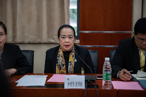 泰国政府总理办公室特别顾问本松.禅颇博迪先生在讲话中表示希望中泰双方彼此加强战略沟通、完善合作机制、丰富合作内容、创新合作模式、拓展合作空间,以共建“中泰国际学院”为新的起点,扎实推进互惠共赢,因地制宜,谋划长远,在人才培养、社会服务和文化传承等各个方面取得新的突破。