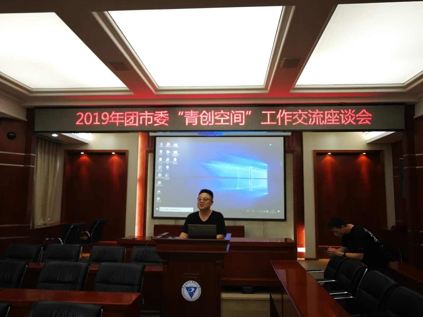 校团委书记袁玉刚、“青创空间”管理员郑栋之陪同调研交流。