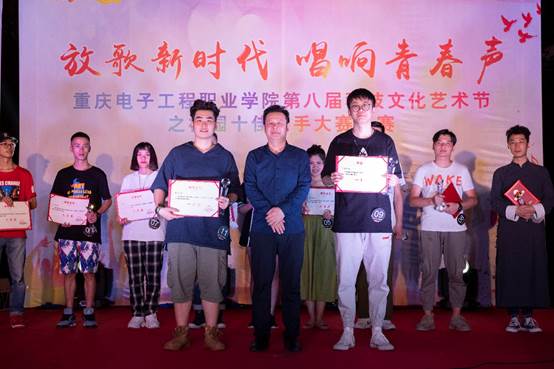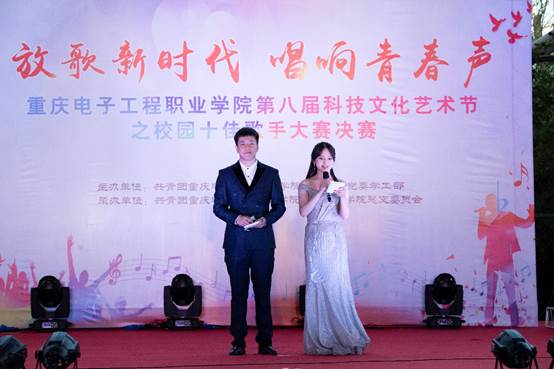 为认真学习贯彻习近平新时代中国特色社会主义思想,全面落实党的教育方针,引导大学生强化理论武装,坚定理想信念。2019年5月23日19:00,由重庆电子工程职业学院校团委主办,通信工程学院团总支承办的重庆电子工程职业学院第八届科技文化艺术节之“放歌新时代·唱响青春声”校园十佳歌手大赛决赛在风雨篮球场正式拉开帷幕。学校领导,各二级学院领导、老师,校团委老师以及特邀评委老师,各二级学院学生会代表、各团支部代表共计500余人参加此次活动。