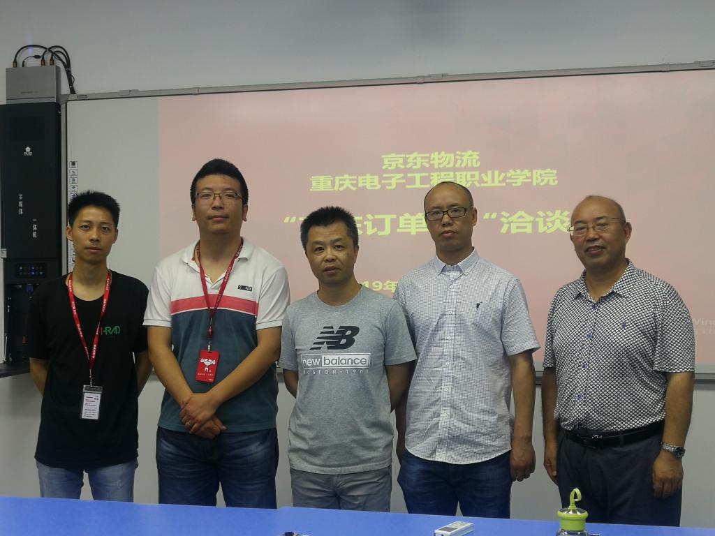 2019年5月27日,京东物流人力资源经理彭鑫、京东物流西南分公司便民校园重庆城市经理杨明一行到我校洽谈组建“京东订单班”,商讨零距离培养行业企业急需的高素质人才。我校财经管理学院院长黄志平、副院长汪启航、物流系主任王雪峰以及合作发展部王希琼参与了洽谈。