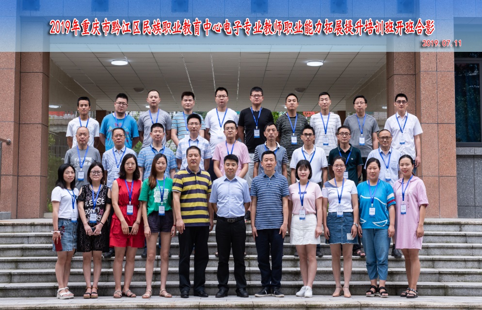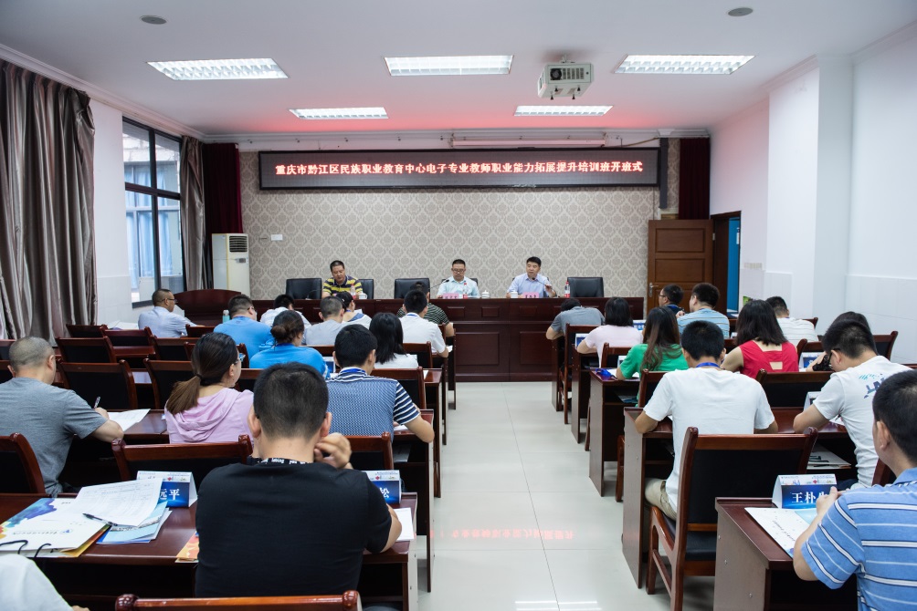 7月11日,重庆市黔江区民族职业教育中心电子专业教师职业能力拓展提升培训班开班式在我校国培基地1-101室举行。培训与继续教育中心主任陈志军、电子与物联网学院副院长夏西泉、以及来自重庆市黔江区民族职业教育中心的29名电子专业教师参加开班式。开班式由培训与继续教育中心继续教育科负责人张亚主持。