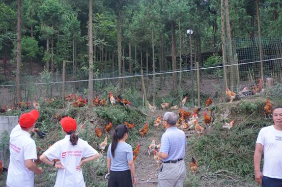 陈元利队长向实践团成员介绍金硒生态“福圭鸡”的养殖情况