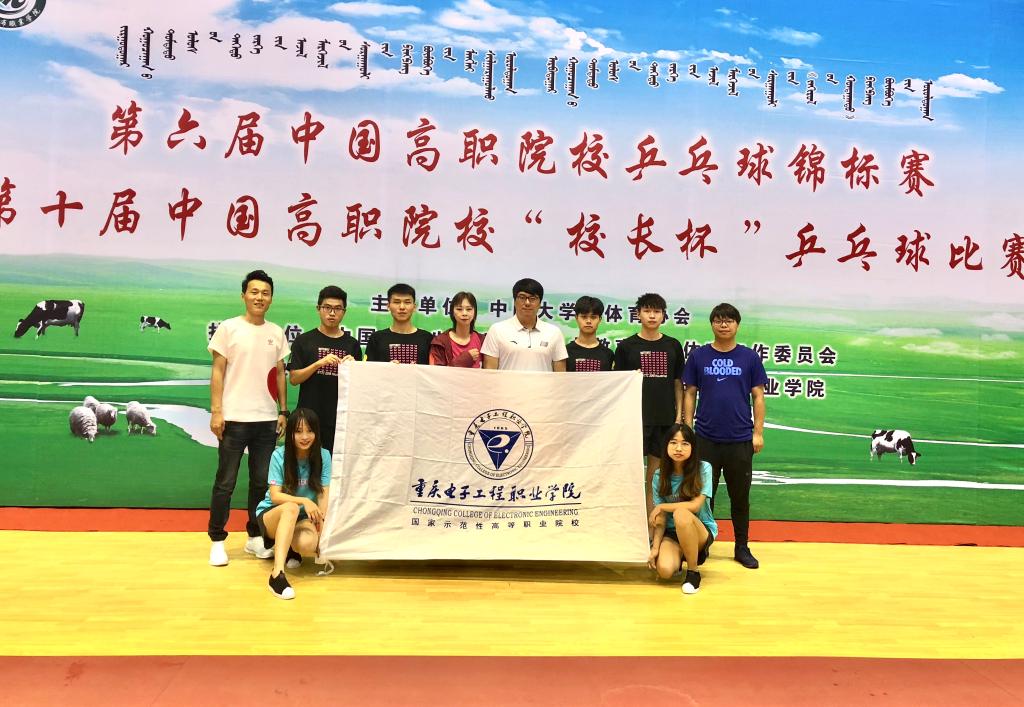 2019年7月14日,由中国大学生体育协会举办的2019年全国高等职业院校大学生乒乓球锦标赛在内蒙古乌兰察布职业学院落下帷幕。本次比赛全国共有35所大学参加。重庆电子工程职业学院共有6名队员参加本次比赛,他们分别来自建筑与材料学院、智能制造与汽车学院、财经管理学院、数字媒体学院。本次比赛由体育与国防教学部副部长徐然担任领队,杨晓梅担任主教练。
