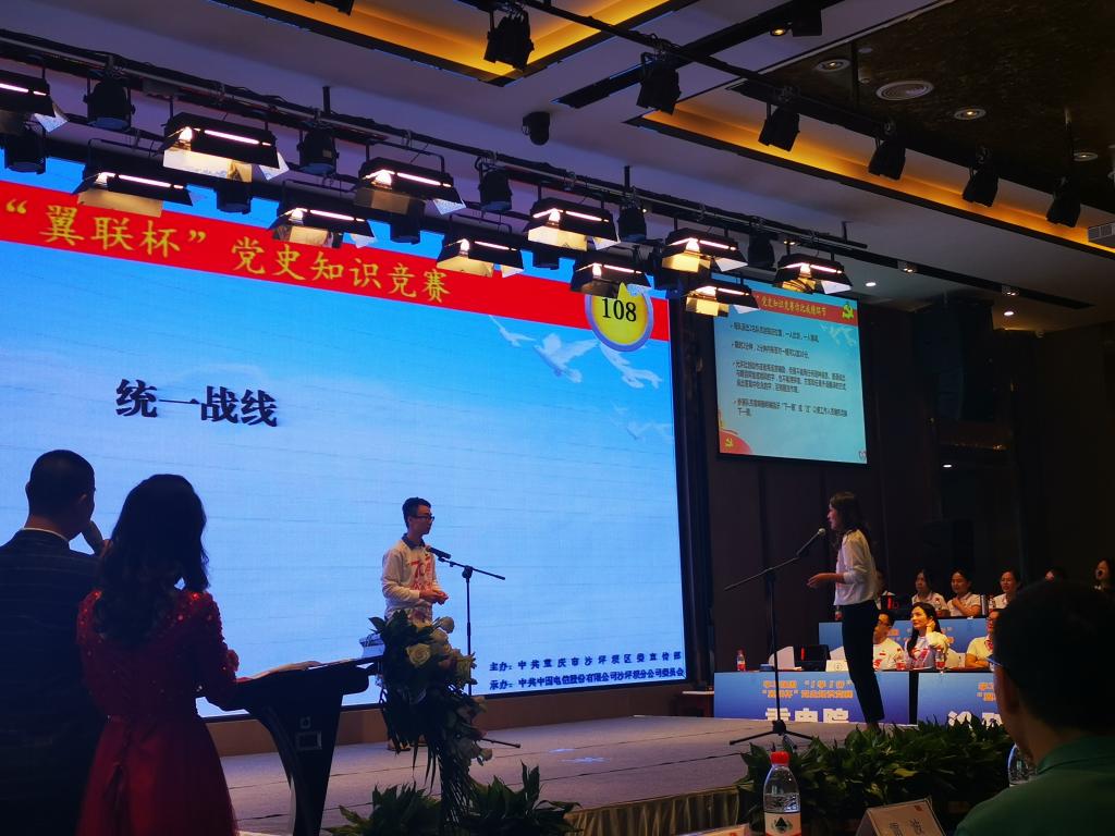 为深学笃用习近平新时代中国特色社会主义思想,感悟新中国成立70年来的沧桑巨变;结合“不忘初心、牢记使命”主题教育、“学习强国”学习平台运用情况,我校组织教师于9月23日参加由沙坪坝区宣传部主办,中国电信沙坪坝分公司承办的“翼联杯”党史知识竞赛,参赛队伍来自沙坪坝区属行政单位、企事业、院校等十家党组织。