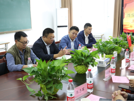 刘成俊副校长首先代表学校对王成副校长一行的到访表示热烈的欢迎,并介绍了学校办学的基本情况以及学校“双高”建设的进展情况,希望双方以此次交流为契机,推动双方合作进一步深化。王成副校长介绍了潍柴动力有限公司的基本情况及发展规划,并就潍柴·博世校企合作项目实训中心建设、师资培养、人才培养、区域带动等方面作了详细的阐述。