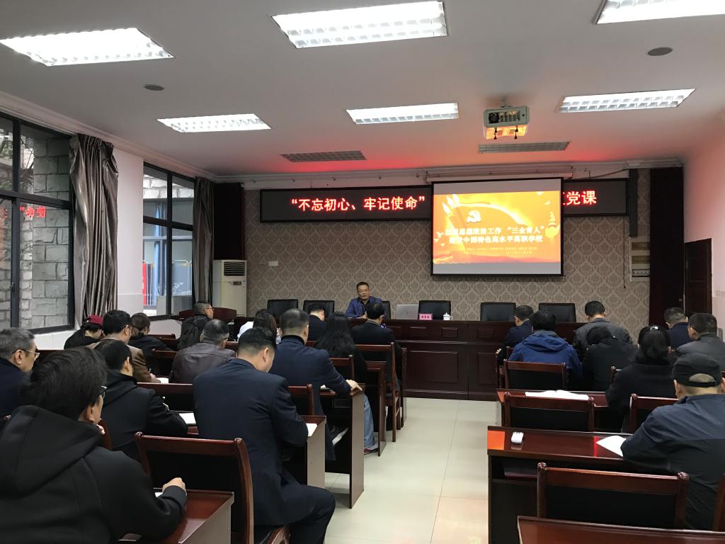 为了进一步深化“不忘初心、牢记使命”主题教育,使广大党员同志全面落实“守初心、担使命、找差距、抓落实”的总要求,切实做到对党忠诚、为党分忧、为党担责、为党尽责,永远做党的初心和使命的实践者。11月8日上午,校党委委员、副校长冉学农以《加强和改进思想政治工作“三全育人”建设中国特色高水平高职学校》为题,为学生工作部党支部、招生就业处党支部、安全管理处党支部、应用技术学院党总支等支部党员同志讲授了一堂生动的主题教育专题党课。