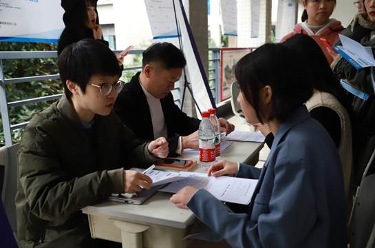 彭海深书记对前来求职的同学提出了三点建议:一要保持良好求职心态。当前正是用人单位招聘的高峰期,同学们要摒弃“懒就业、慢就业”的思想,积极主动求职,先就业再择业。二要合理设置求职期望。当前就业形势紧迫,薪资待遇相较于往年有所降低,同学们要沉得住气、吃得了苦,对自身有清晰的认识和定位。三要注重求职沟通技巧。提前了解单位和岗位需求,注重仪容仪表,掌握有效的沟通技巧。同时,他向用人单位对学院就业工作的支持表示感谢,并希望用人单位向学院提出宝贵建议,促进双方合作共赢。双选会上,我院党员志愿者和学生干部也积极参与服务工作。