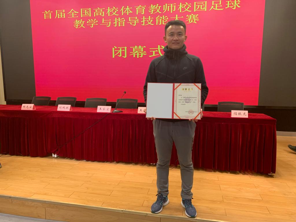 我校体育与国防教学部教师唐荣地做为重庆市教委推荐的高职组唯一代表,最终凭借精心的教学设计、扎实的专项技能和充沛的体能,从近两百名参赛足球教师中脱颖而出荣获课程教学组二等奖。