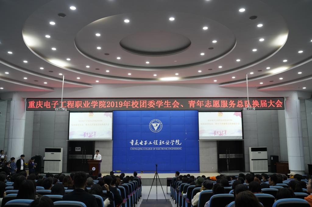 2019年11月21日下午,重庆电子工程职业学院2019年校团委学生会、青年志愿服务总队换届大会在博远厅顺利举行。校团委老师以及校团委学生会、青年志愿服务总队干部干事代表300余人参会。