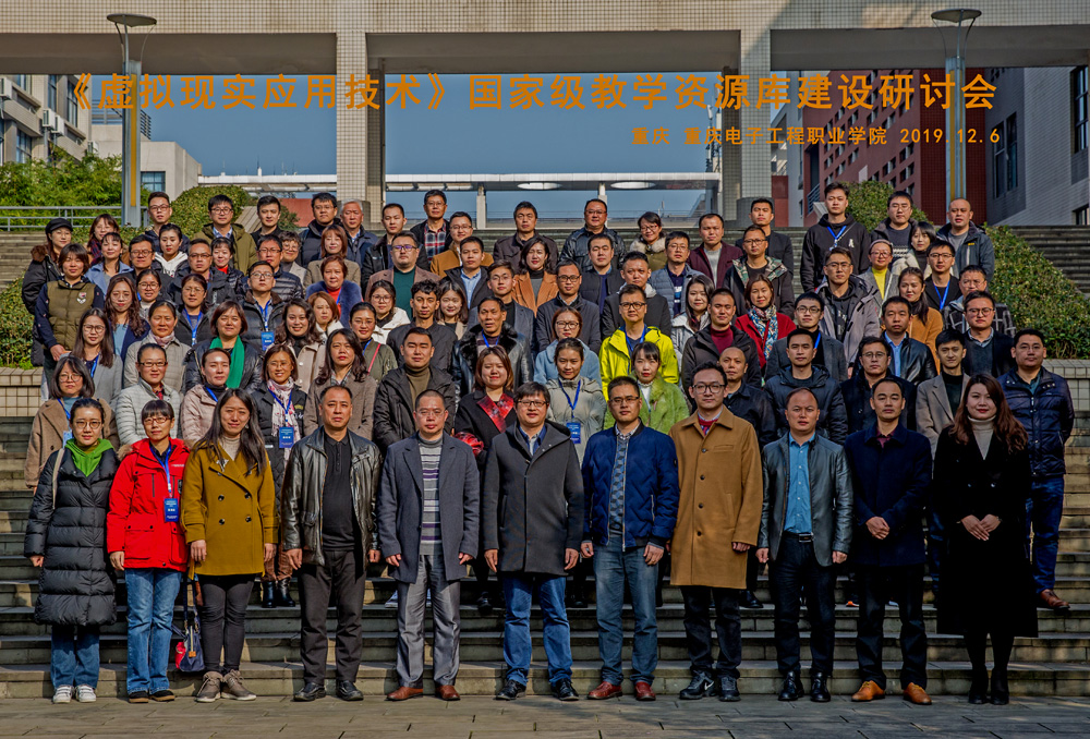 2019年12月6日,2019年第二批职业教育专业教学资源库立项建设项目《虚拟现实应用技术》专业国家教学资源库建设研讨会在重庆电子工程职业学院召开。教育部资源库建设专家方灿林教授、重庆电子工程职业学院校长聂强、副校长龚小勇、教务处副处长代才莉、数字媒体学院党总支书记彭海深、副院长谢永、湖南大众传媒职业技术学院李辉熠院长、南京信息职业技术学院徐俊教授、北京信息职业技术学院教授姚亮、以及来自全国28所高等职业院校的专家、学者、专业骨干教师,13家虚拟现实行业企业负责人、技术专家,共计一百余人齐聚山城重庆,共同探讨国家教学资源库建设,研讨会由持数字媒体学院院长刘晓东主持。