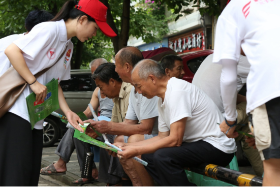 (志愿者向群众宣传垃圾分类)