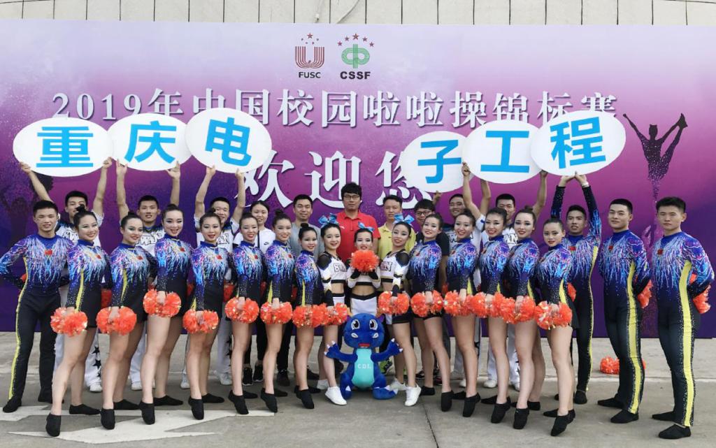我校啦啦操代表队由体育与国防教学部副部长徐然领队,主教练彭天娥老师,教练周盈含老师、刘博源老师带队参加,经过激烈角逐,我校啦啦队最终荣获2019年中国校园啦啦操锦标赛团体总冠军,其中自选花球项目冠军、规定技巧项目冠军、自选爵士项目冠军、小团体技巧第三名、自选技巧项目第三名、双人花球项目第三名、双人爵士项目第四名。