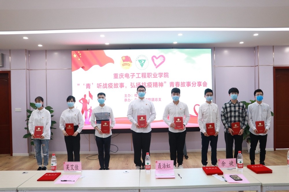 分享会上通过人民网视频了解了全国疫情防控形势。来自不同学院的8位重电志愿者分享了他们的青春战“疫”故事,他们用实际行动诠释了“逆行者”的坚毅与果敢,用担当和坚守展现了重电青年的奉献精神。