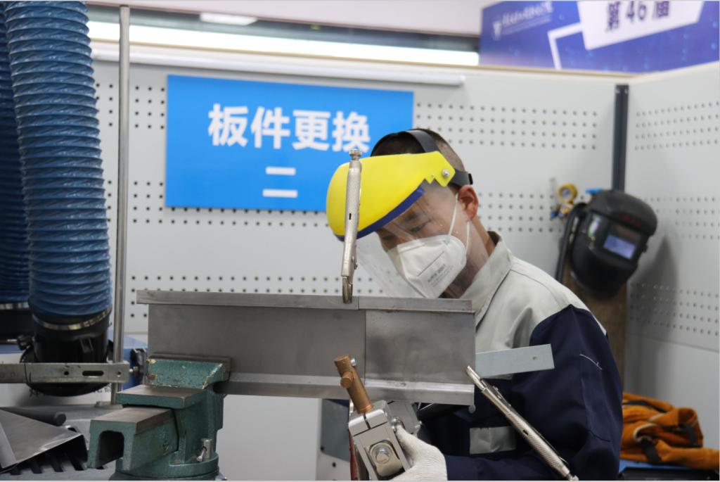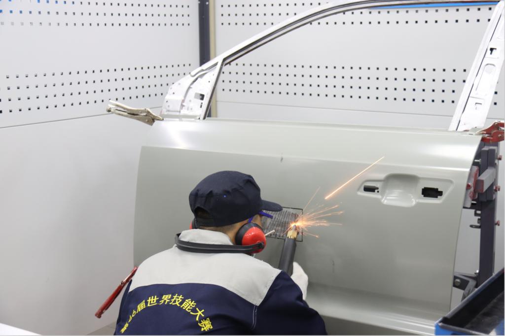 在当日的赛程中,参赛选手需要在80分钟内分时段完成模拟结构件更换及车门损伤修复两个项目的比拼,比赛项目严格参照全国选拔赛的标准进行。最后评委通过各赛项完成过程及质量效果综合评定选手的技术水平。经过激励的比拼,最终我校智能制造与汽车学院学生冯德鸿获选拔赛第一名,同时也取得了第46届世界技能大赛车身修理全国选拔赛的参赛资格。