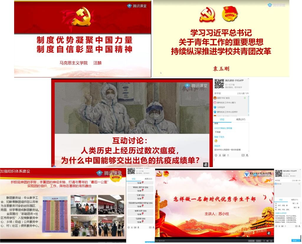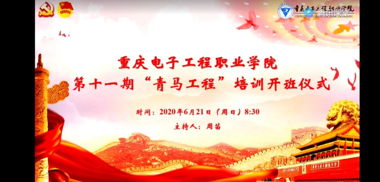 近日,重庆电子工程职业学院第十一期“青马工程”培训通过线上授课的方式顺利开展。全国卫生计生系统先进工作者、“重庆好人”获评者、“榜样面对面”党的十九大精神沙坪坝区宣讲分团成员、沙坪坝区中西医结合医院院长杨强,马克思主义学院苏小柱教授、汪麟副教授,校团委书记袁玉刚、校团委彭婧老师,担任本次“青马工程”的授课老师。参与本次学习的学员为校院两级学生组织代表,共计300余人。