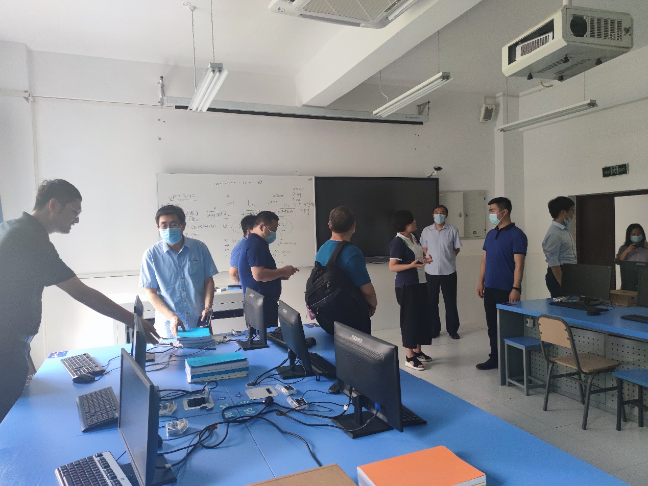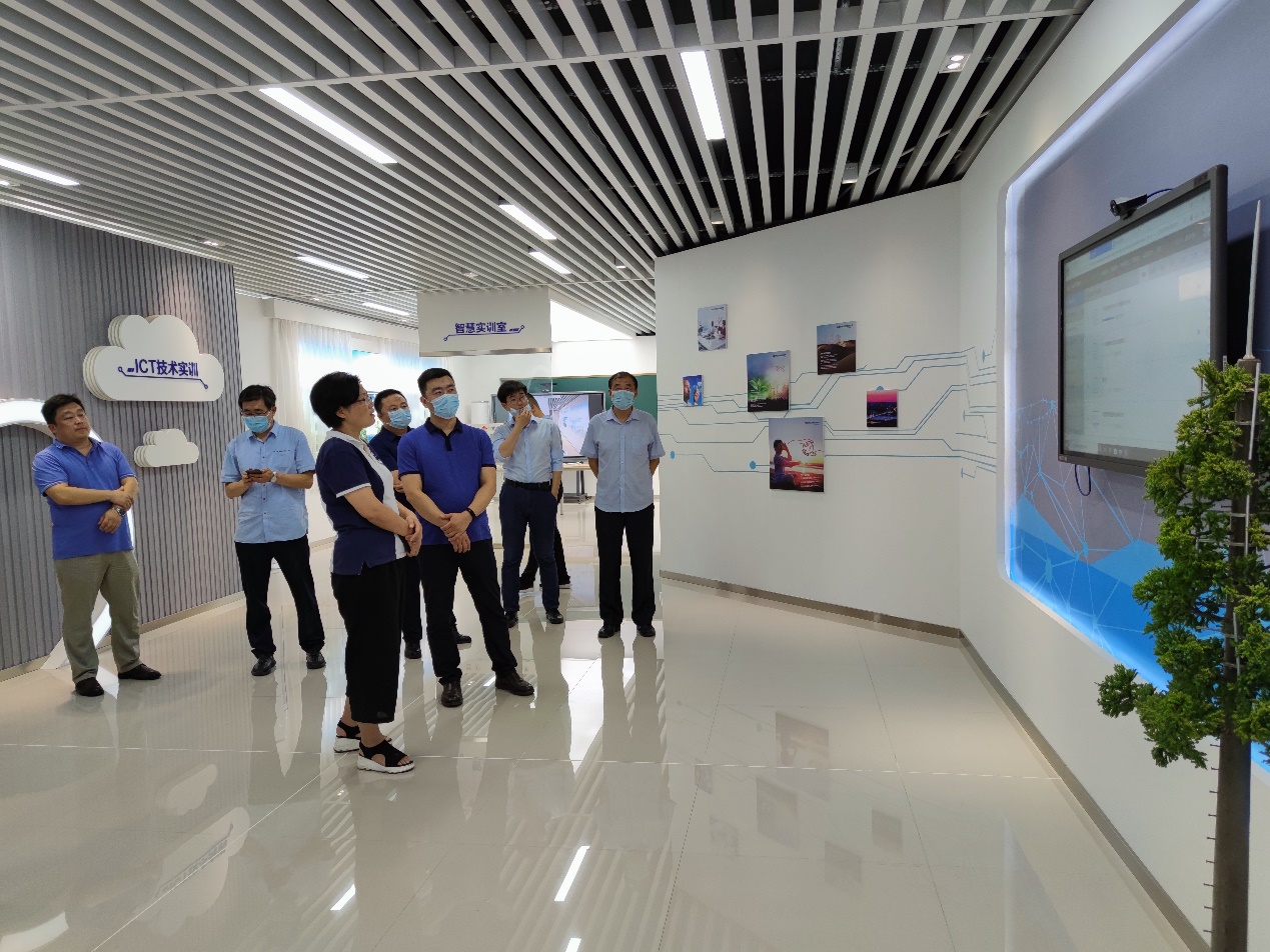刘成俊副校长首先代表学校对河北软件职业技术学院的到访表示了欢迎,并向来宾介绍了我校的师资、学生等基本情况,以及学校在科研、社会服务等方面的成果。乔哲副校长就河北软件职业技术学院的情况也作了简要介绍,并希望在产教融合和校企合作等相关方面进行深入沟通和交流。陶亚雄院长向来宾分享了我校与华为技术有限公司在开展校企合作、专业与课程建设、人才培养等方面的做法与经验,并与来宾就双高建设、1+x培训及认证、产学研用社会服务等方面进行了深度的探讨。来宾们对于我校取得的各项成果给予了高度评价,并对此次交流探讨表示了由衷的感谢。座谈前,来宾们还参观了通信工程学院智慧创新中心和通信工程学院实训室。