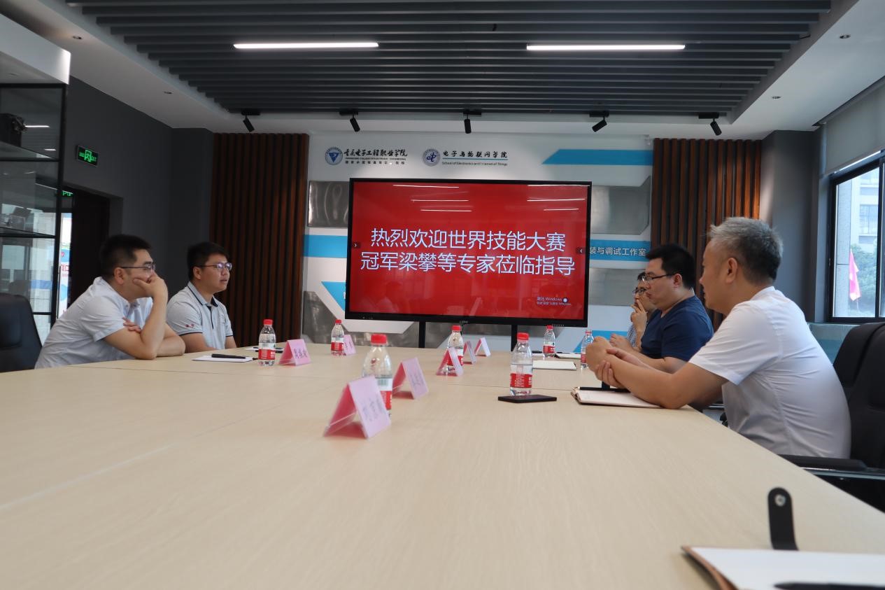 7月3日,世界技能大赛冠军梁攀及电子技术国训基地负责人周振瑜等专家莅临我校光电技术集训基地指导工作。