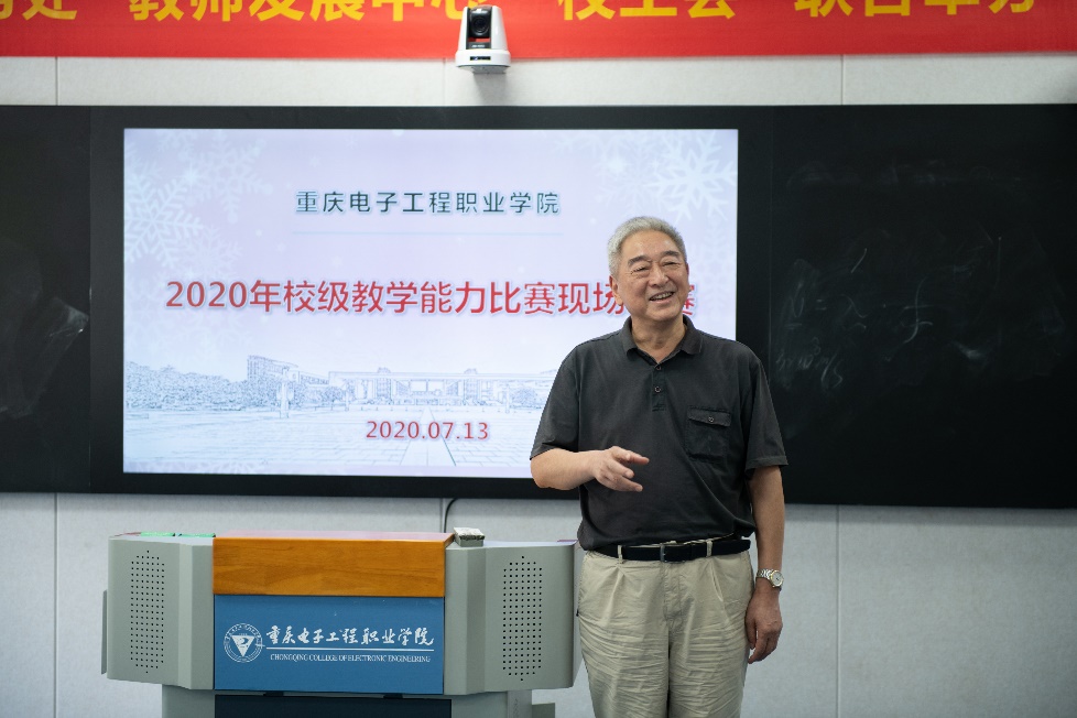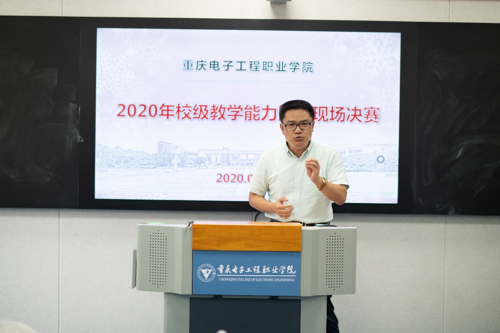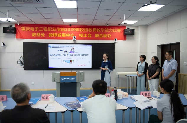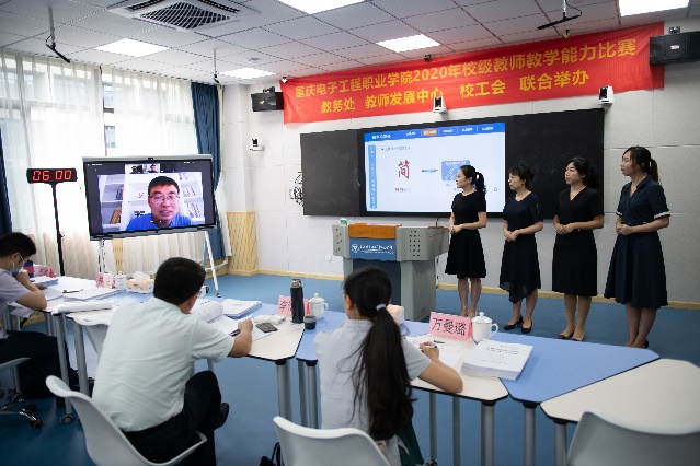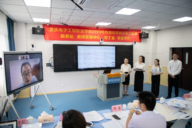 2020年7月13日,学校在智慧教室14301举行教师教学设计能力比赛第二阶段现场决赛。本次比赛特邀嘉宾分别是重庆高等职业技术教育研究会会长及国家督学成员张亚杭教授、重庆电子工程职业学院校长聂强教授、副校长龚小勇教授、教务处副处长赖先志、人力资源处副处长邓小龙、校工会主席唐莉;线上远程评审专家分别是2018年全国职业院校教学能力比赛物联网实训赛项一等奖第一名获得者潍坊工程职业学院的王金龙老师、2019年全国职业院校技能大赛教学能力比赛一等奖获得者浙江金融职业学院的陆妙燕老师、浙江工商职业技术学院的王璞老师;现场评审专家分别是重庆交通大学李海峰教授、重庆大学万曼璐博士、2018年全国职业院校教师教学能力比赛一等奖获得者湖南汽车工程职业学院的林崟老师和重庆城市管理职业技术学院的王爽老师。教务处副处长代才莉主持本次比赛。