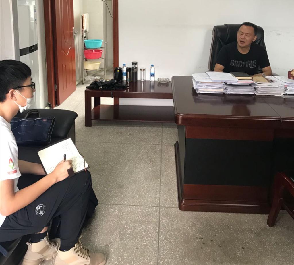 在牡丹中学校长办公室,钟炳男同学采访了学校的段校长,他向队员们讲述了牡丹中学巨大变化背后的故事。2015年以前,占地仅18亩的太平中学在校学生1260余人,老师仅70余人。办公条件极其简陋,没有教职工宿舍。学生住宿条件长久以来也没有得到过改善,学生只能居住在由教室改造而成的临时宿舍中,30人住一间宿舍而且没有热水供应。