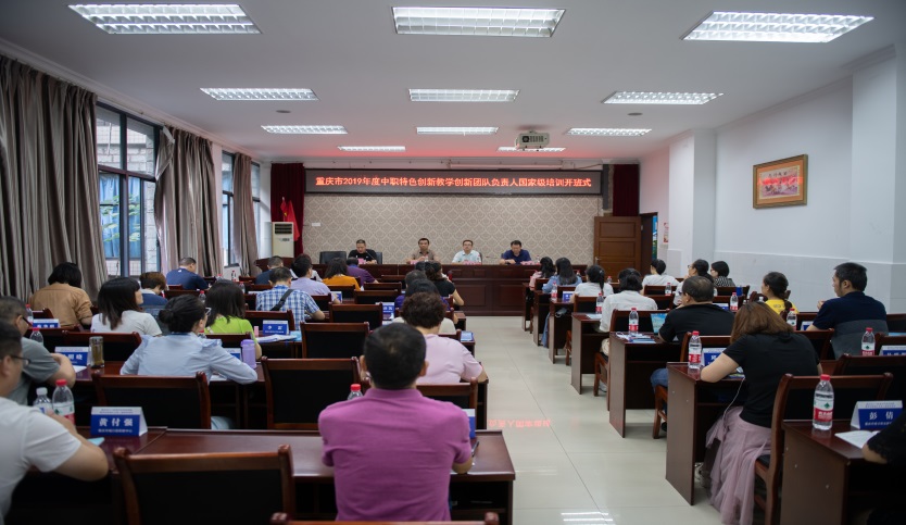 9月7日上午,重庆市2019年度职业院校教师素质提高计划中职特色创新项目教学创新团队负责人国家级培训班在我校开班,来自重庆市近40所中职学校的50名老师参加培训学习。