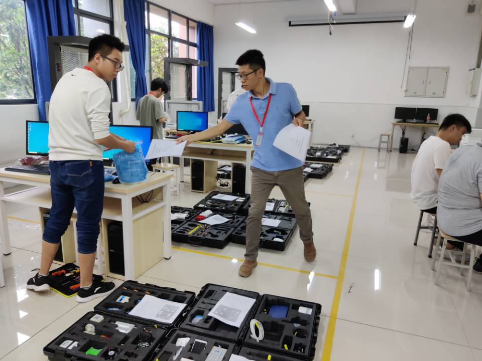 在学校和学院领导的大力支持下,电子与物联网学院师生积极备战。由9名老师组成的教练团对13名同学进行专项训练,对选手的综合技能、心理状态、存在问题进行全面分析,制定个性化的集训方案。虽然集训只有短短的20天,在学院的全力配合、老师的辛勤付出和选手的刻苦努力下,王杰和张正跃两位同学在激烈的比赛中沉着应战,发挥了良好的专业技能水平,最终取得优异成绩。