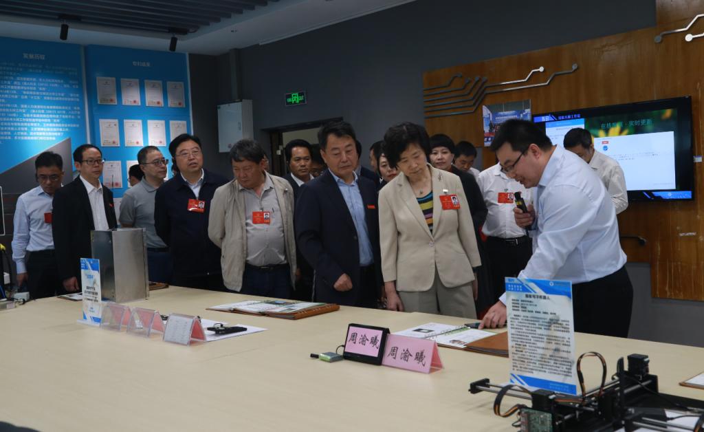 孙卫平、聂强代表学校向张轩一行介绍了学校相关情况。调研组一行实地考察了学校人工智能与大数据应用科技创新服务中心(大数据可视化中心)、重电-华为智慧创新中心(重电-华为ICT学院)、重电硅光子人才培养与技术创新中心(陈良国家级技能大师工作室)等。