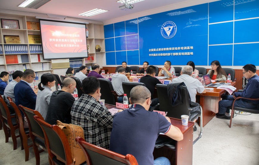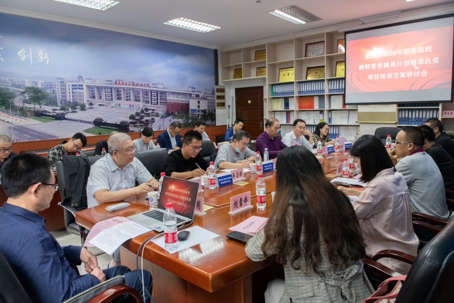 针对重庆市2020年职业院校教师素质提高计划精准扶贫项目专家评审中发现的问题,为确保该项目的顺利推进和有效实施,9月23日下午,重庆市2020年职业院校教师素质提高计划精准扶贫项目培训方案研讨会在我校南校区1-103B会议室举行。