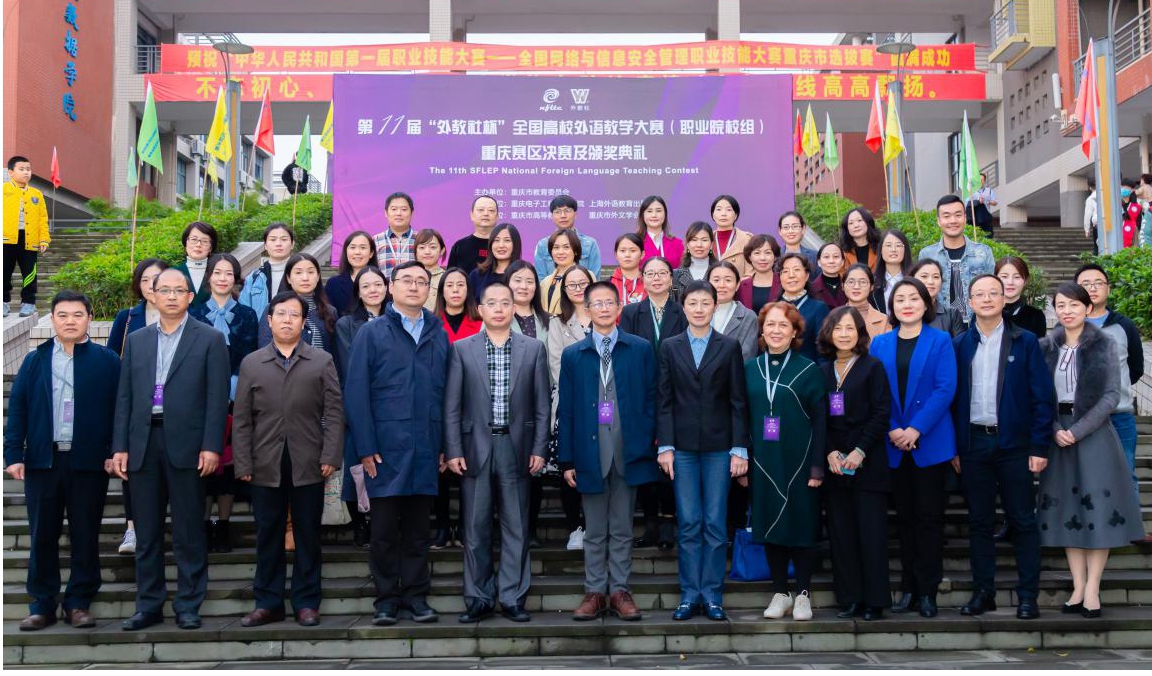 2020年10月18日,由重庆市教委主办,重庆电子工程职业学院和上海外语教育出版社承办、重庆市高等教育学会和重庆市外文学会协办的第十一届“外教社杯”全国高校外语教学大赛(职业院校组)重庆赛区决赛暨颁奖典礼在重庆电子工程职业学院举行。颁奖典礼由重庆电子工程职业学院通识教育与国际学院院长沈雕主持,重庆市教委高教处李翔,上海外语教育出版社副总编谢宇,重庆电子工程职业学院副校长龚小勇、教务处处长王正勇、通识教育与国际学院党总支书记冉槐、通识教育与国际学院副院长张华敏以及各嘉宾评委出席典礼。