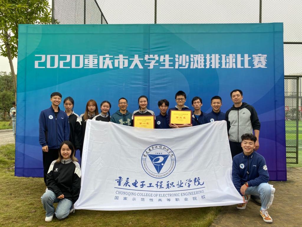 2020年重庆市大学生(乙组)沙滩排球比赛于10月26日至10月30日在重庆邮电大学移通学院拉开帷幕,我校排球代表队由体育与国防教学部副部长徐然领队,男队教练员罗安、女队教练员张华两位老师带队参赛,经过4天的激烈角逐,我校女子排球代表队勇夺冠军,男子排球代表队获得第五名的好成绩。