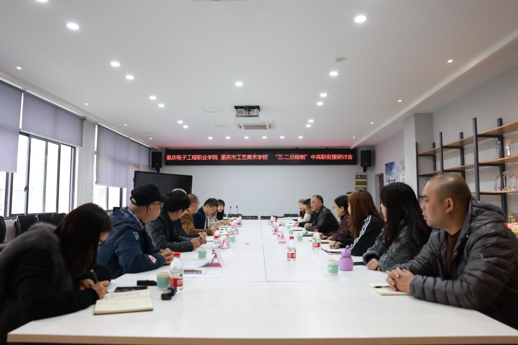 2020年11月5日下午,重庆电子工程职业学院与重庆市工艺美术学校于在数字媒体学院1411会议室举行了“三.二分段制”中高职衔接研讨会。